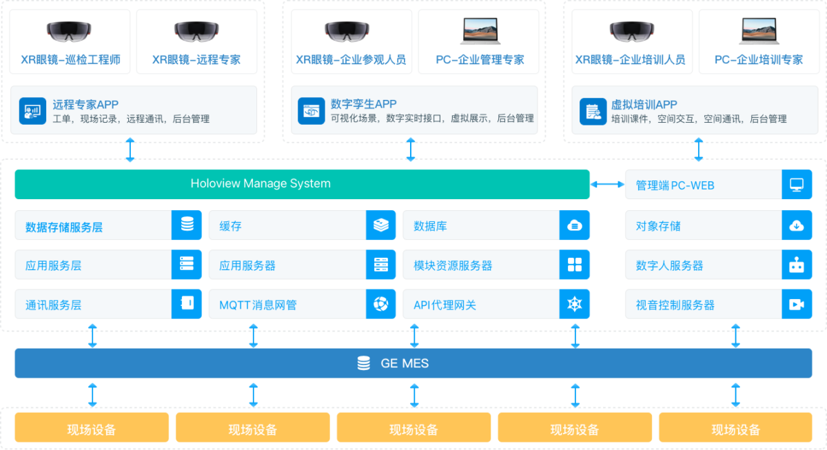 針對工業企業,混合現實應用開發者以及其他合作伙伴,提供了HOLOVIEW XR通訊及渲染推流服務及技術,包括:虛擬MR遠程協同,遠程視音頻通話,即時通訊聊天,與IOT設備通信等能力。從而讓開發者快速創建支持工業物聯網和混合現實的遠程協同應用。滿足工業企業多種賦能“業務場景”!
